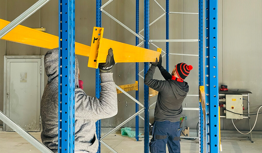 - Túltolásgátlók szállítása és felszerelése. Ez a védelmi elem az esetleg túl mély betárolástól véd, amikor az áru át lenne tolva a dupla sor másik oldala felé, esetleg a dupla sor másik oldalán lévő rakatot kitolja. Szimpla állványsoresetében az elem védi a mögöttes falat.
